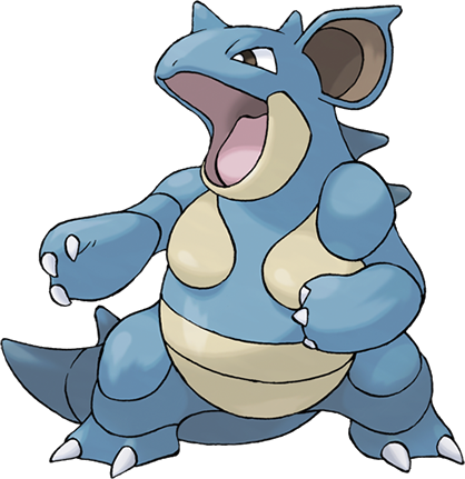 La carapace qui protège Nidoqueen est très dure. D'une nature douce, elle peut devenir extrêmement agressive si elle protège ses petits. La corne sur son front secrète un poison, mais elle ne l'utilise que très rarement. Ses Ultimapoings peuvent facilement briser un mur en deux. |
